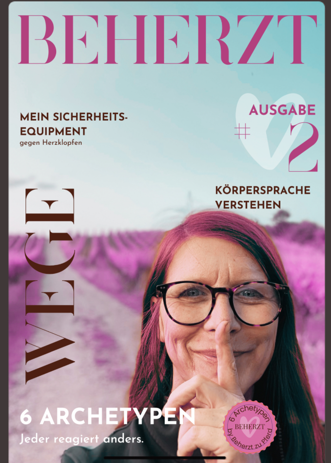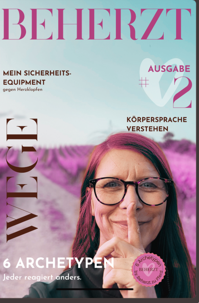 Mit der BEHERZT-Archetypen-Methode erkennst du, welches Muster dich im Sattel begleitet und wie du es verändern kannst. So stärkst du dein Selbstvertrauen, findest innere Klarheit und überwindest deine Angst beim Reiten. Und das Beste: Diese Entwicklung wird dir Spaß machen, weil sie zu dir passt.